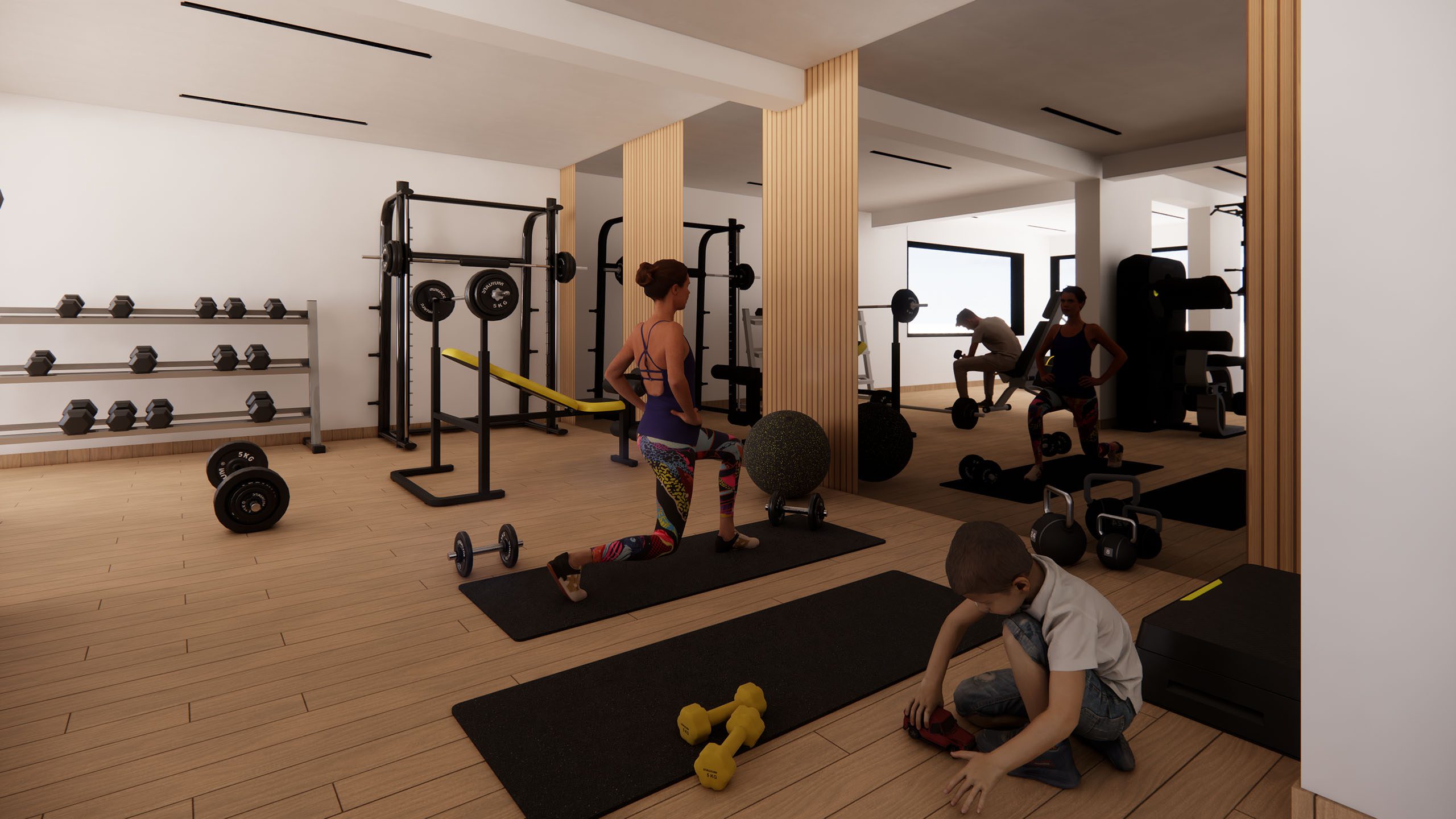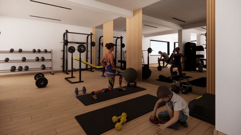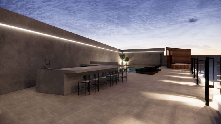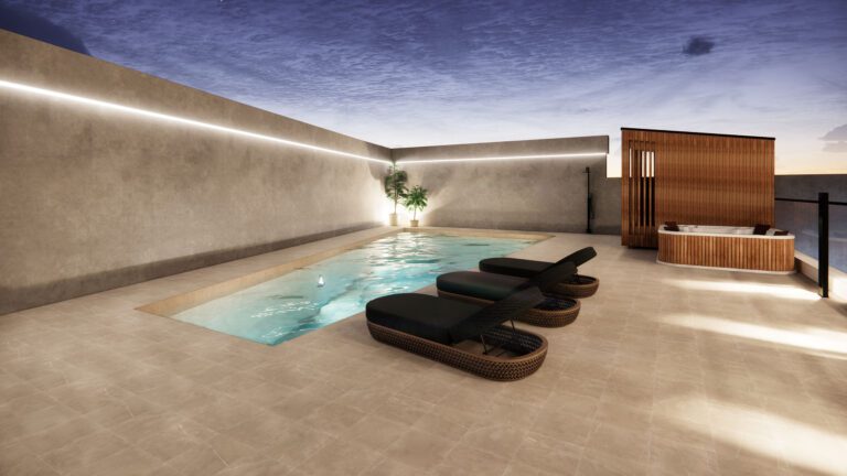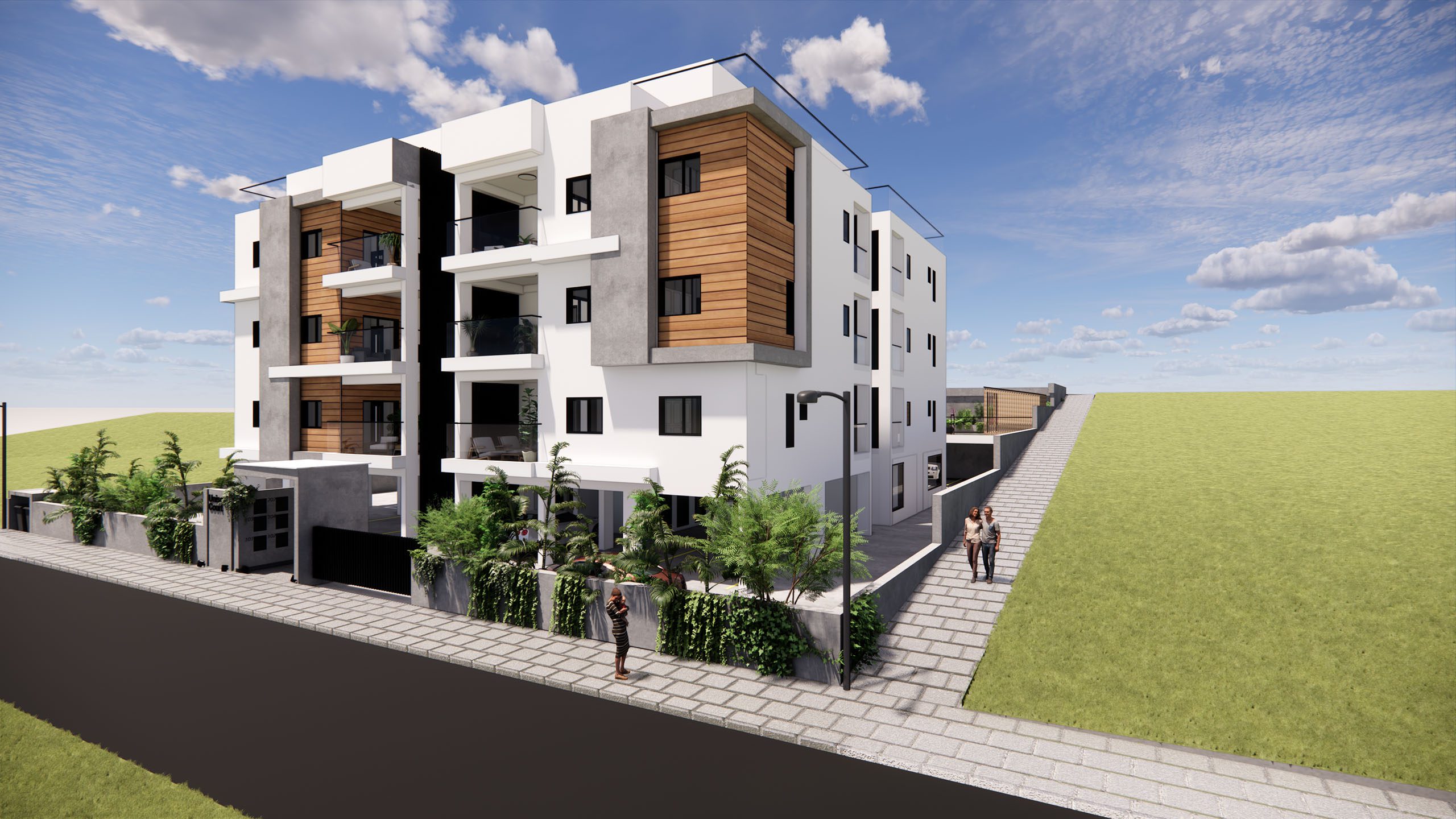 Each floor will have 4 apartments of 3 bedrooms consisting of 96m² living areas + 21m² verandas + 2m² storage + 15m² covered parking.